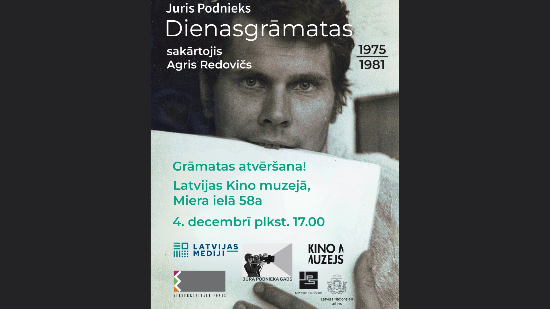 Izcilajam Latvijas dokumentārā kino režisoram un operatoram Jurim Podniekam (1950 – 1992) 2025. gada 5. decembrī būtu 75 gadu dzimšanas diena. Ar Valsts kultūrkapitāla fonda atbalstu 2025. gadā īstenota programma Jura Podnieka gads – tās ietvaros notikuši zinātniski pasākumi, Jura Podnieka filmu skates, tiks izdota grāmata, kā arī ir radīta grandioza izstāde Podnieka laiktelpa (apskatāma līdz 7. decembrim!)