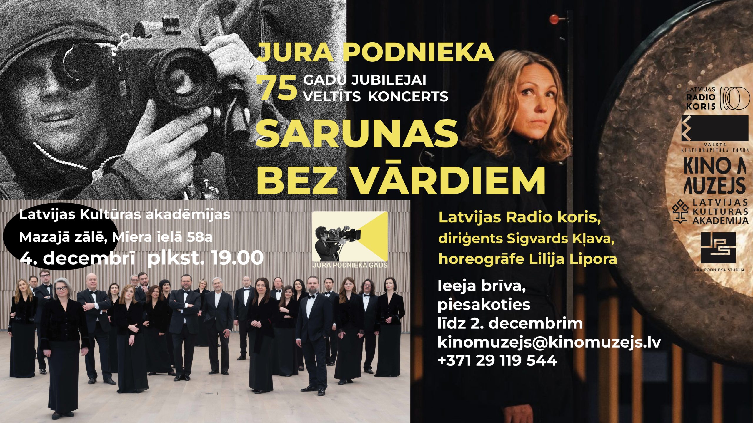 Podnieka dzimšanas dienu gaidot, 4. decembrī plkst.19.00 LKA Latvijas Kino muzejs aicina uz režisoram veltītu Latvijas Radio kora un horeogrāfes Lilijas Liporas (deja, gongi)